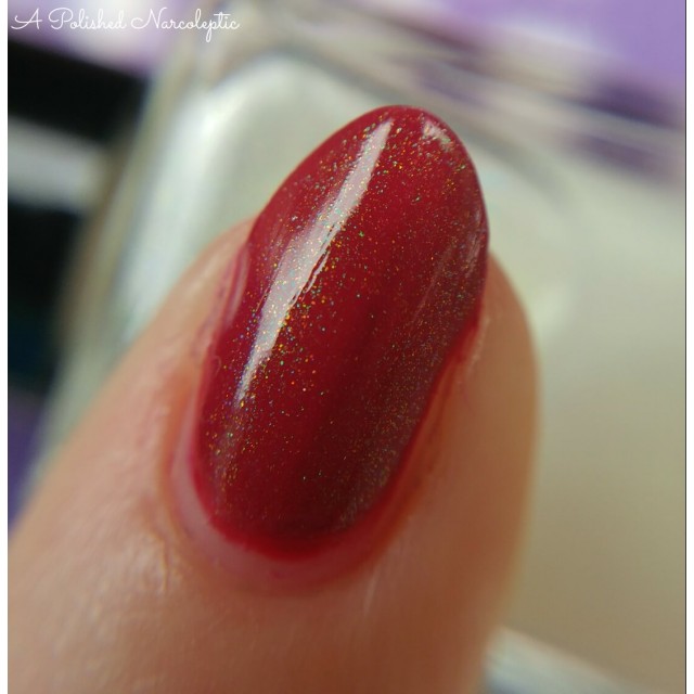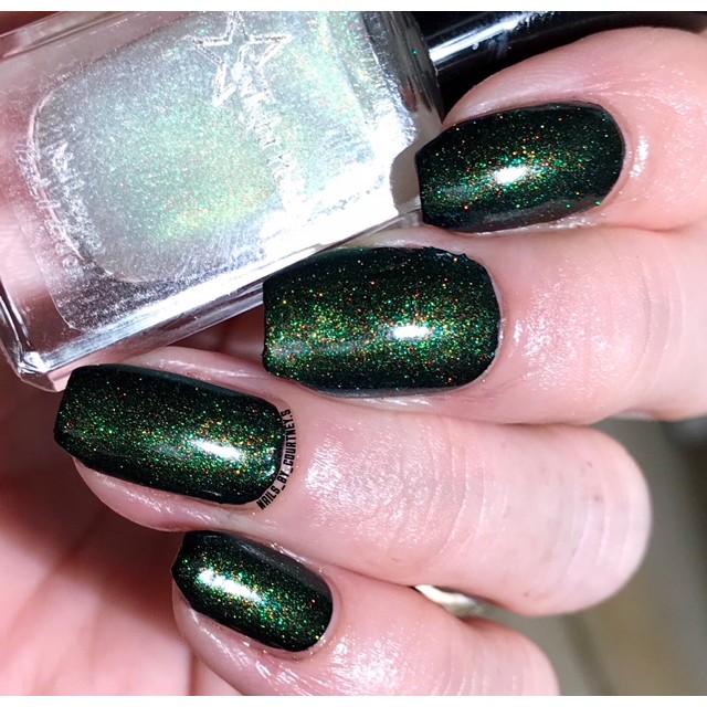 Chimera is a color shifting shimmer top coat made by combining four Mythological pigments (Phoenix, Dragon, Unicorn, and Kelpie). The effect isn’t the obvious transition of a single pigment alone, but has more of a “points of light” effect.  Chimera is part of the Mythological Creatures collection, which contains the basic top coats for each Mythological creature.