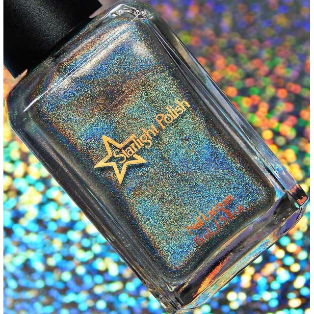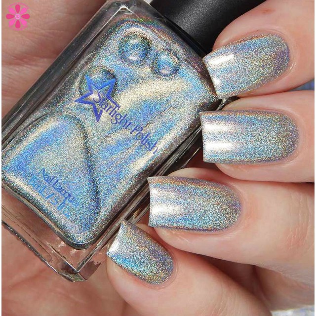 Starbright is a silver linear holographic polish and can be used as an intense holographic top coat, or can be worn alone at approximately three coats.