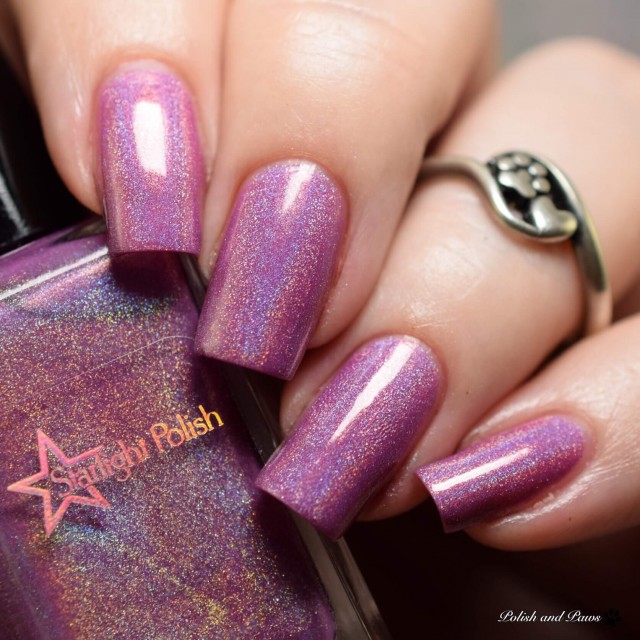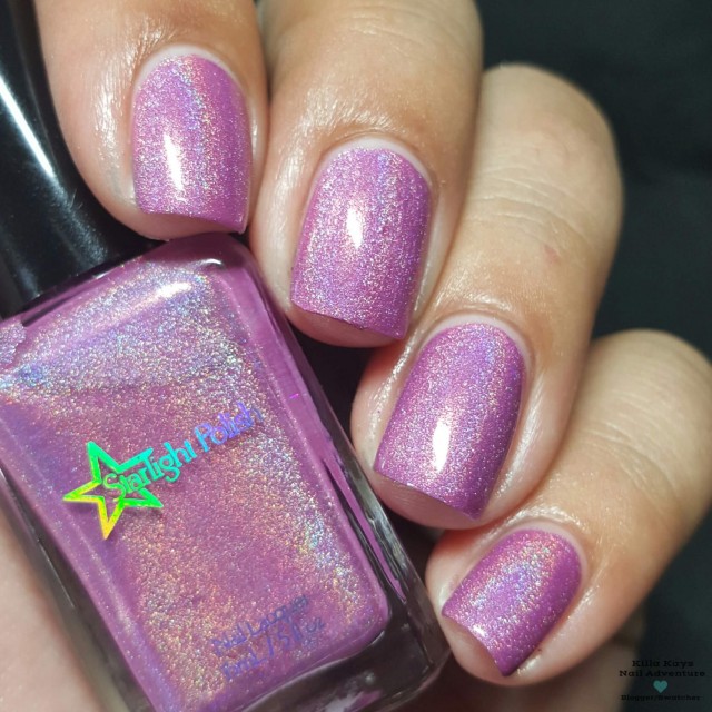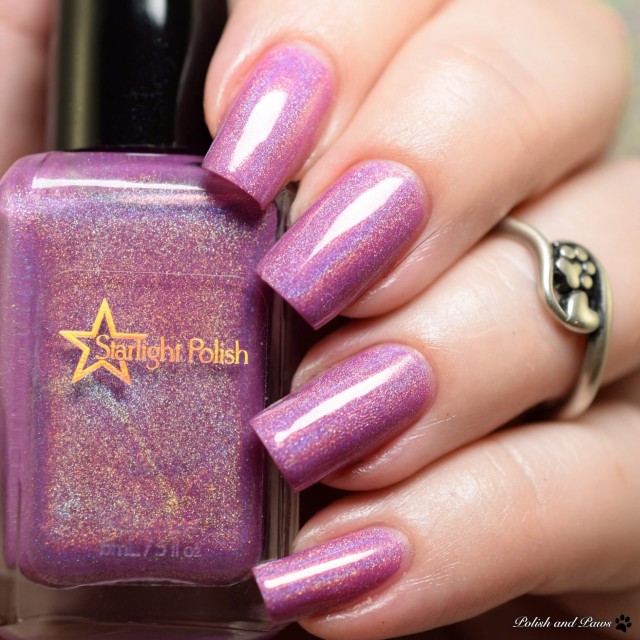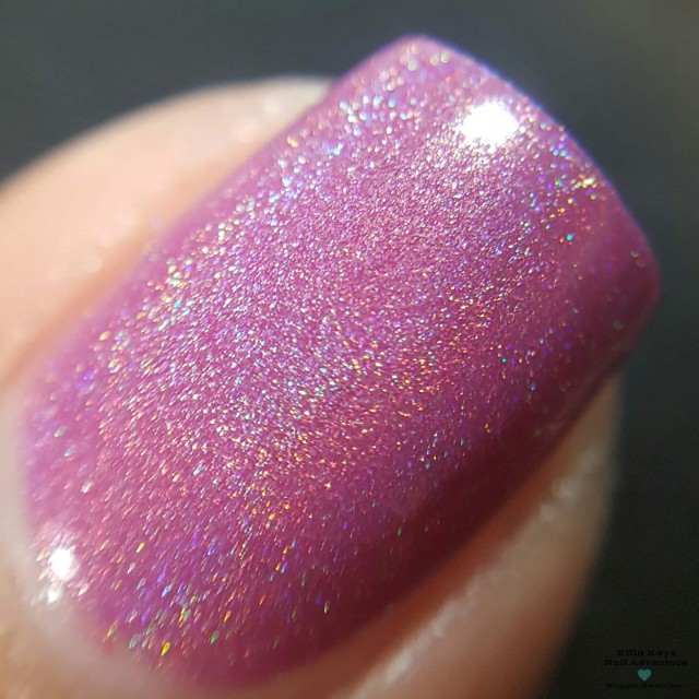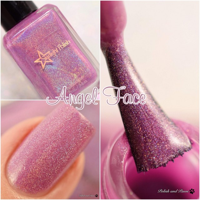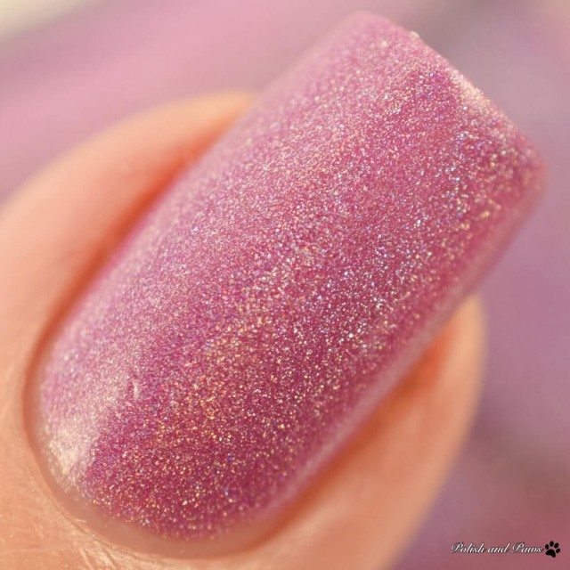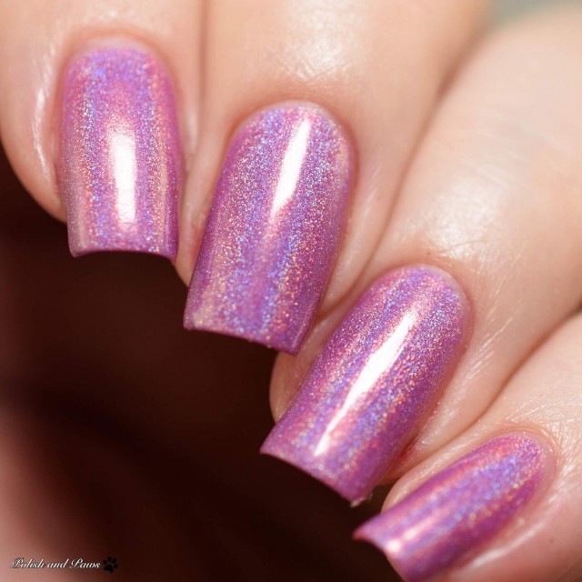 Angel Face is a lavender holographic polish, named for the lavender Floribunda rose variety ‘Angel Face.’ It is opaque in two to three coats.