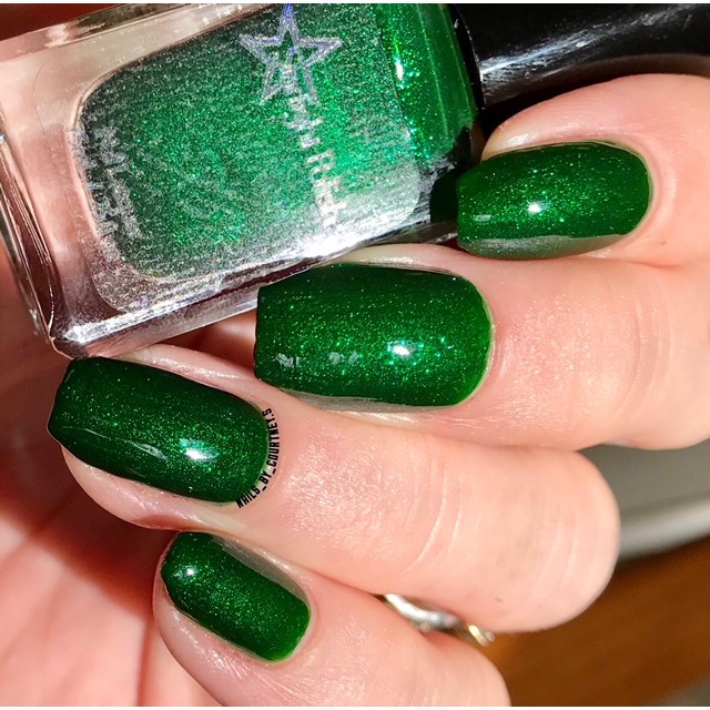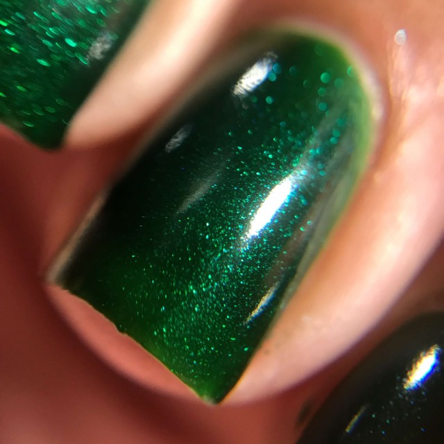 This polish contains a "unicorn pee sibling" pigment, which are pigments of the same sort as "unicorn pee" but with different color shifts.